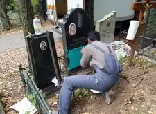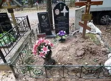 На данном месте захоронения нам предстояло нанести на надгробье дополнительные надписи, а также отремонтировать сломанное во время последних похорон ограждение. Когда мы приехали на участок, то помимо памятников с именами покойных там стояли таблички, содержащие информацию ещё о двух усопших.