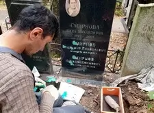 Последним этапом работы стала наклейка фотокерамики на памятник и обновление потускневших надписей на обоих надгробьях.